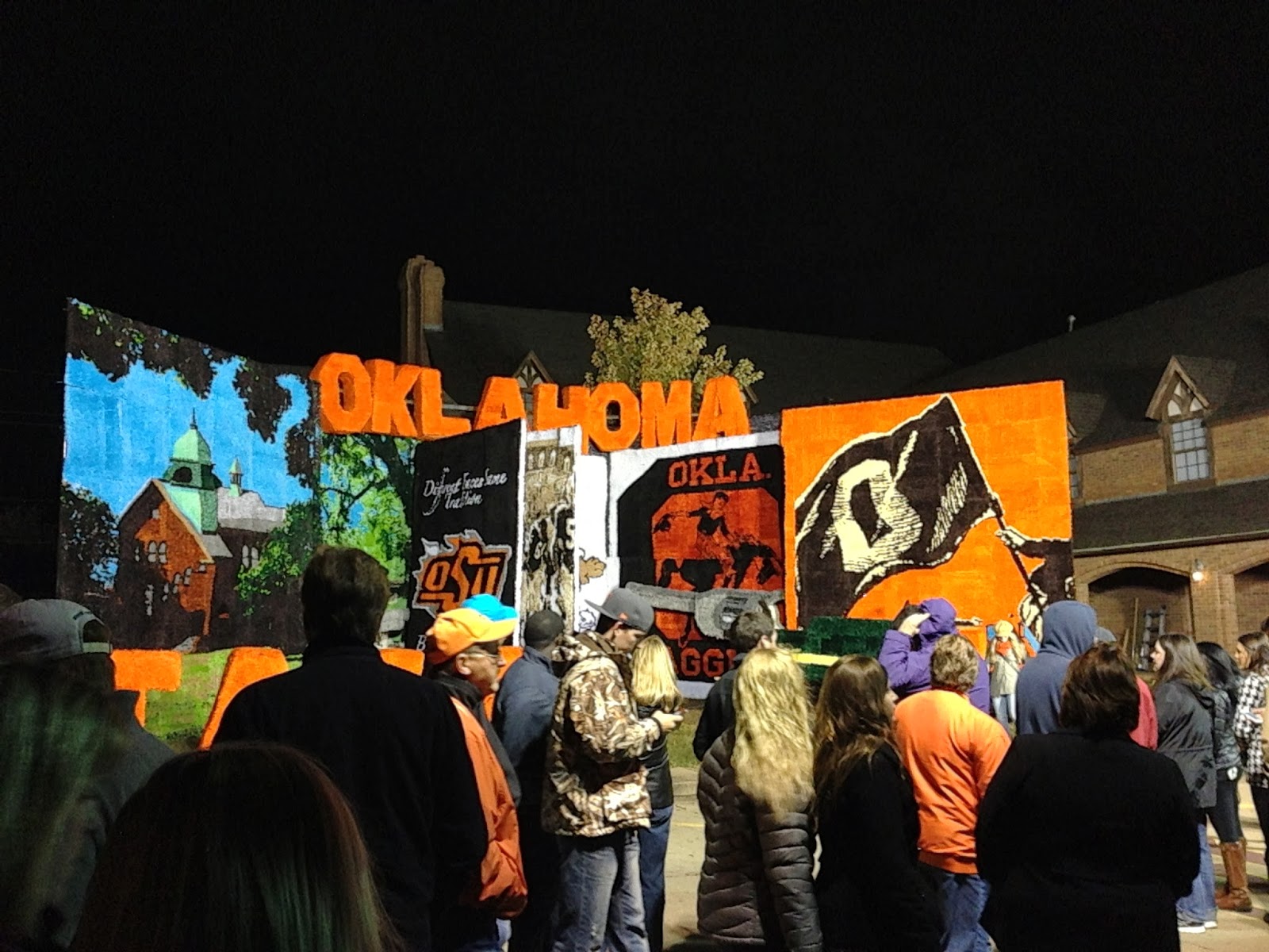 Homecoming has an entirely different meaning when you work for your university. You still get nostalgic and excited about all the festivities, but you also feel the strain of the added events and demands that come along them. Luckily for me, this year's Homecoming was pretty much all play. A lot of the responsibilities I used to have during the week didn't follow me to my new position, so that left a lot more time for me to enjoy Homecoming. On Friday night we had several friends over for dinner before Walkaround. We had a blast and even though it was cold and drizzly, that didn't deter us from seeing all of the house decs. By the time we got there, most of the crowd had cleared out, so we enjoyed a little more elbow room than in years past.
