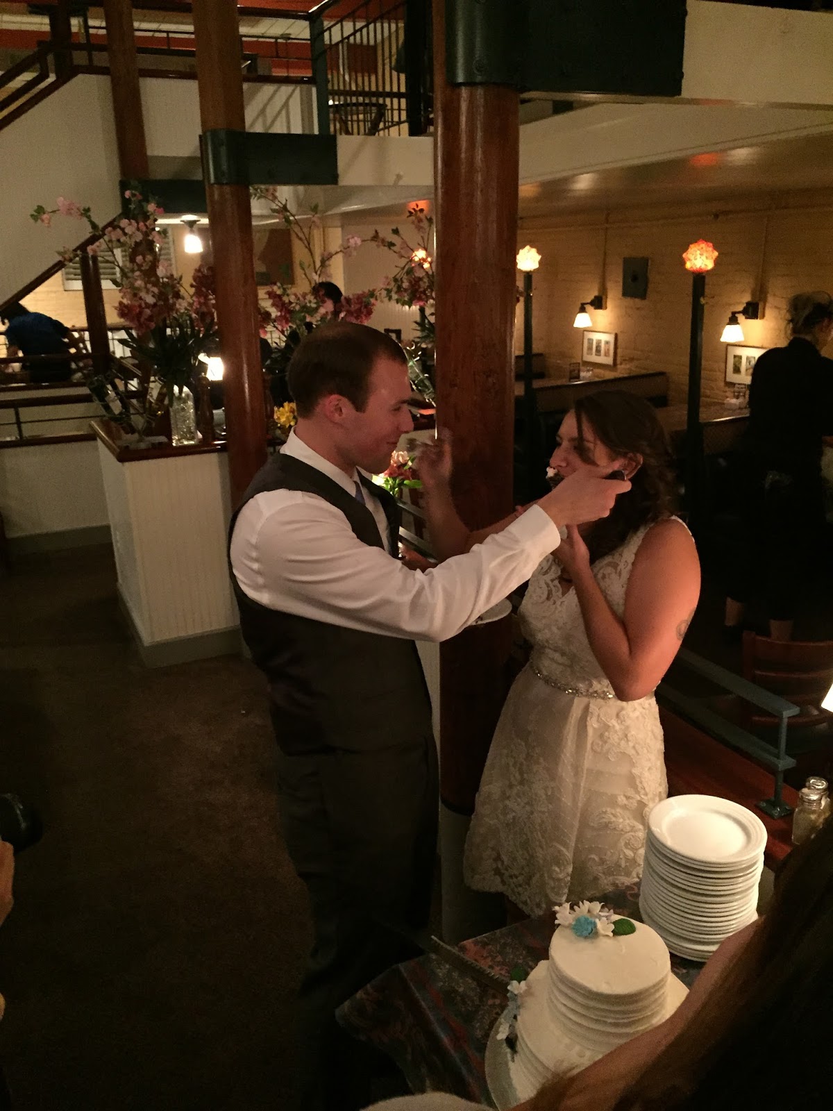 After the wedding, we headed to Savage Mill for the reception. I was a pub set in an old mill, so it was a really cool place. We had a large area just for the wedding guests and enjoyed a buffet before Zach and Maegan cut into the cake.